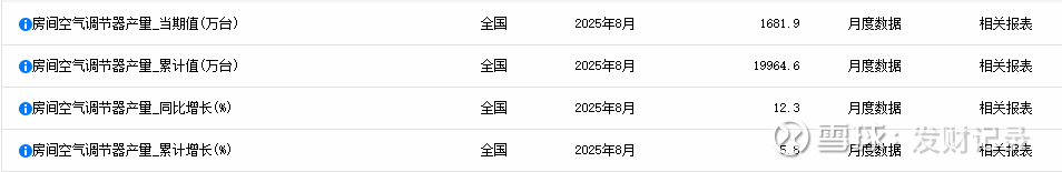 按国家统计局数据 2025.1-8 新空调产量同比+5.8%