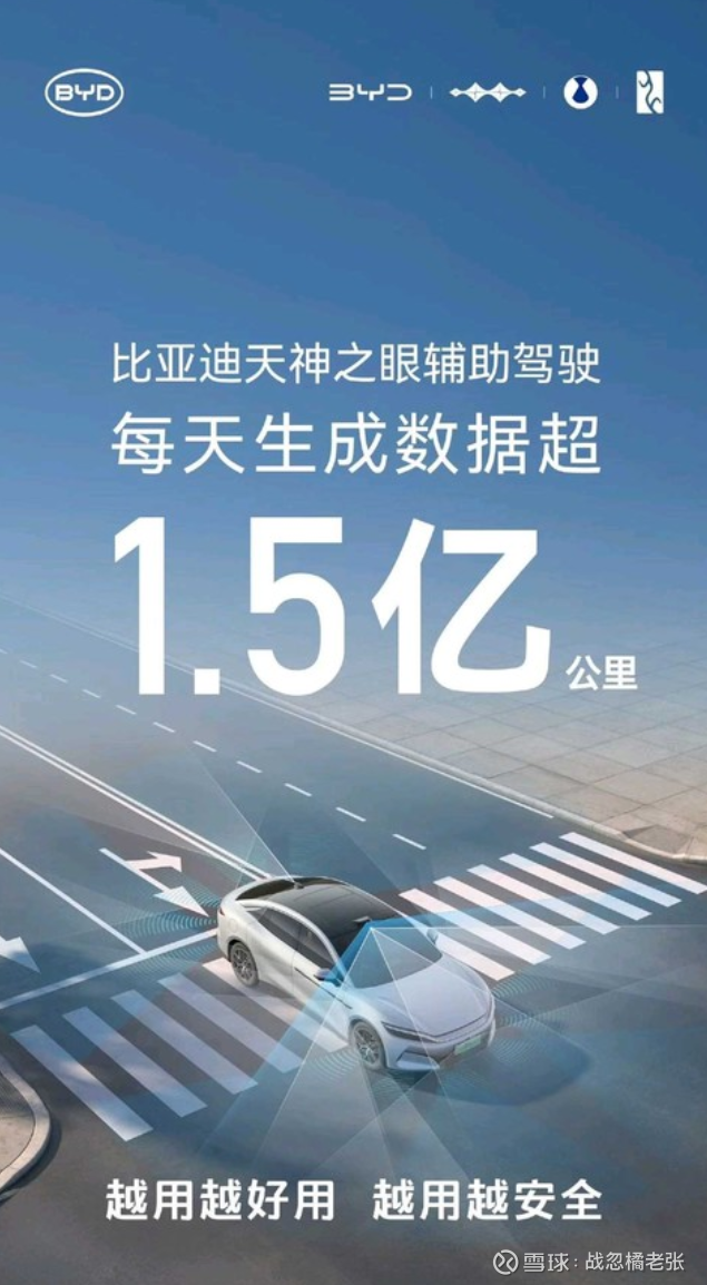今天比亚迪官方发了公众号文章,比亚迪天神之眼辅助驾驶数据每天1.5亿公里