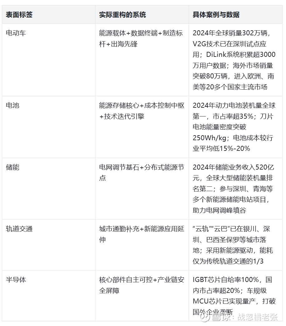 从这个表格可以清晰地看出,王传福的布局早已超越了“造车”的范畴。他所构建的,是一个以新能源技术为核心,覆盖“能源生产(光伏合作)-能源存储(电池、储能)-能源运输(电动车、电动商用车)-能源使用(全场景终端)-能源回收(电池回收)”的完整能源生态体系。比亚迪不是一家单纯的制造企业,而是一家“能源生态解决方案提供商”——这才是王传福被严重低估的核心所在。