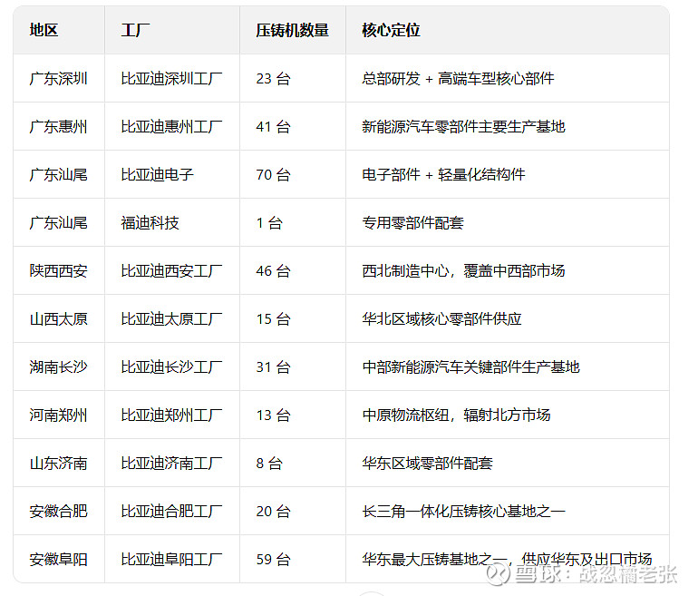 比亚迪压铸机总览:327 台布局 11 大工厂,超级吨位引领行业革命