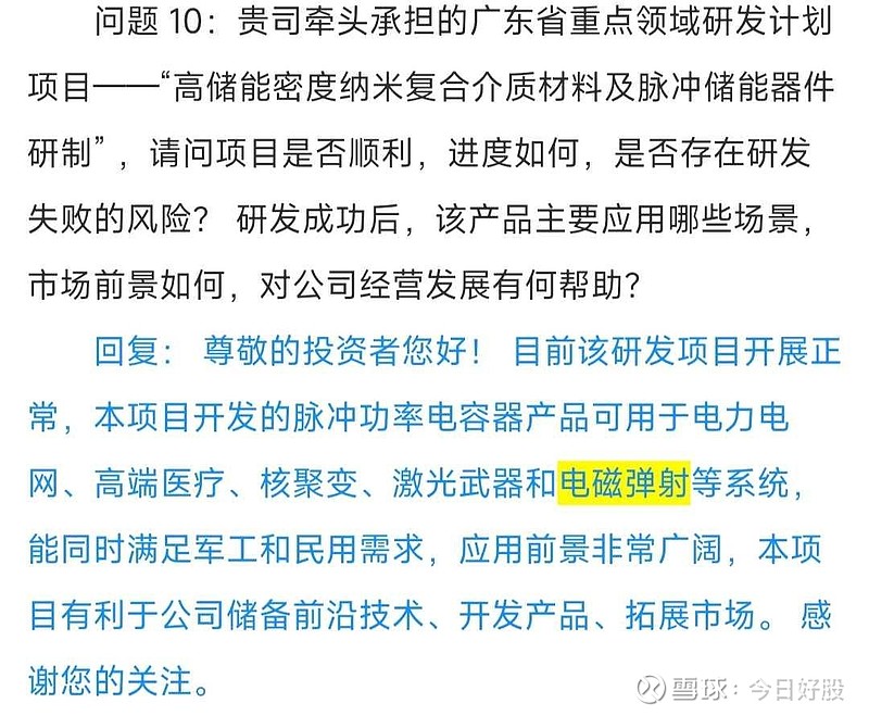$胜业电气(BJ920128)$ 抖音刷到很多电磁弹射的视频,热度相当高,我们的中压直流电容储能电磁弹射技术已经对美国形成了技术碾压。查了一下北交所胜业电气研发的脉冲功率电容器是电磁弹射系统的核心储能部件,也可以用于核聚变和激光武器,满足军工和民用需求,应用前景广阔。
