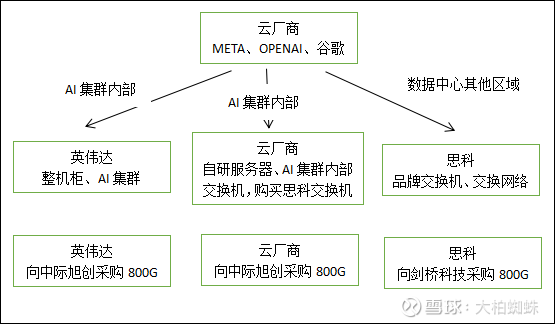 庞大的800G光模块需求来自于两个既独立又关联的领域,一个是AI集群内部,一个是数据中心其他区域。