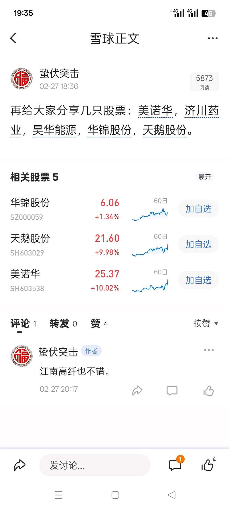 上月底给大家分享的几只股票,半个月过去了,看看表现怎么样?整体表现还不错啊。