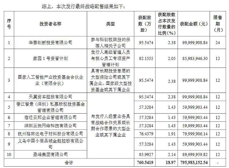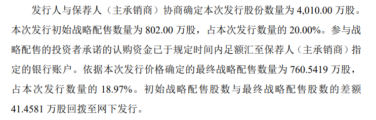 说实话,这个配售是不及预期的。因为原来预计配售20%,最后只战略配售了18.97%,还有一些回拨到线下配售。