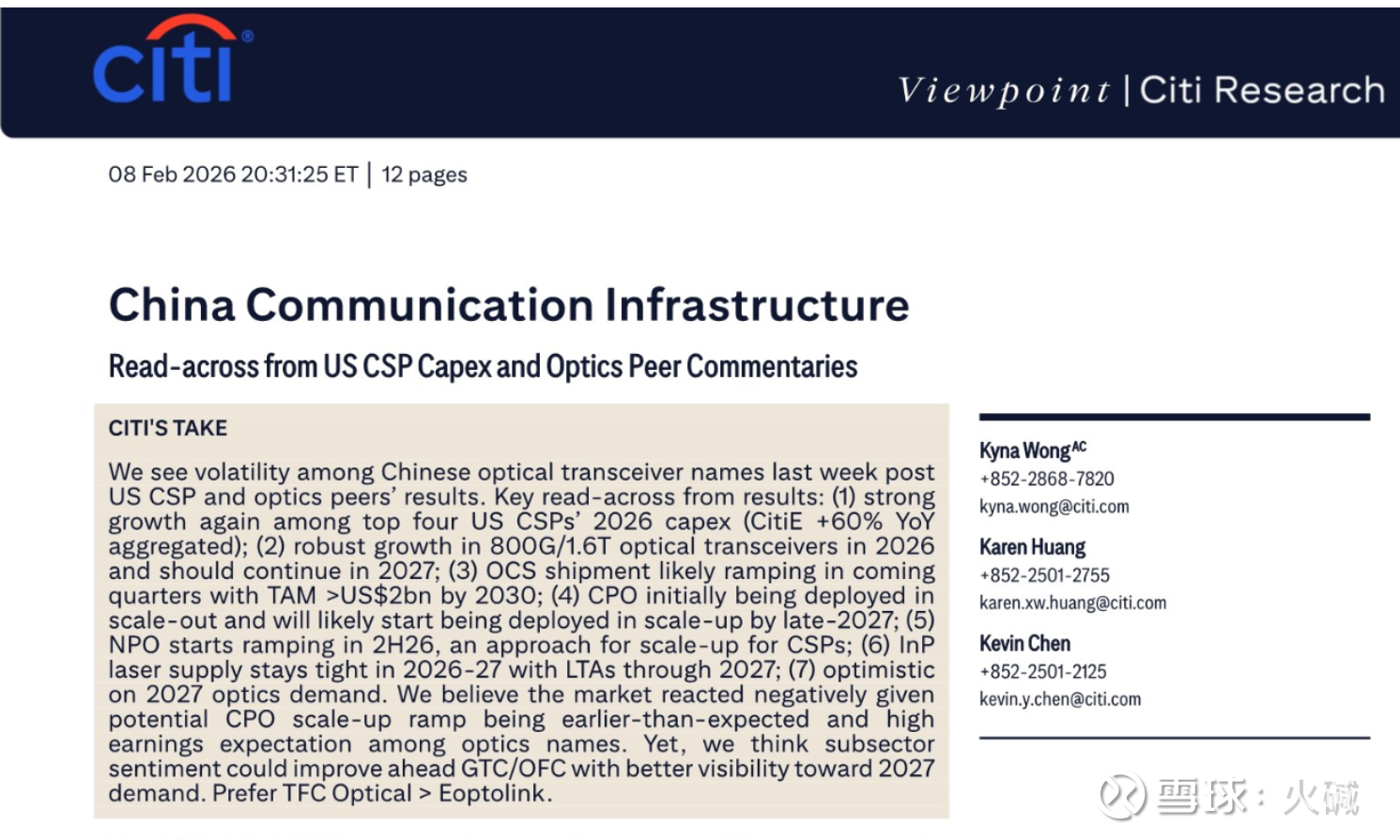 花旗最新的报告,CPO初期在scale-out落地,27年在scale-up落地。这不就是昨天贴出来的花旗闭门会的意思吗?那么多喷子上来就喷是假的,现在还敢跳出来吗?哈哈 查看图片