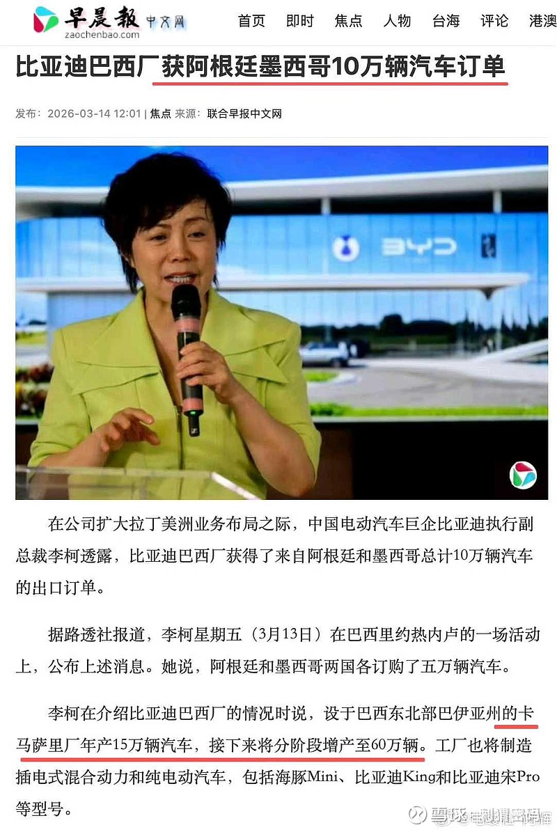 比亚迪巴西厂获阿根廷墨西哥10万辆汽车订单!!!我去~~🐂了