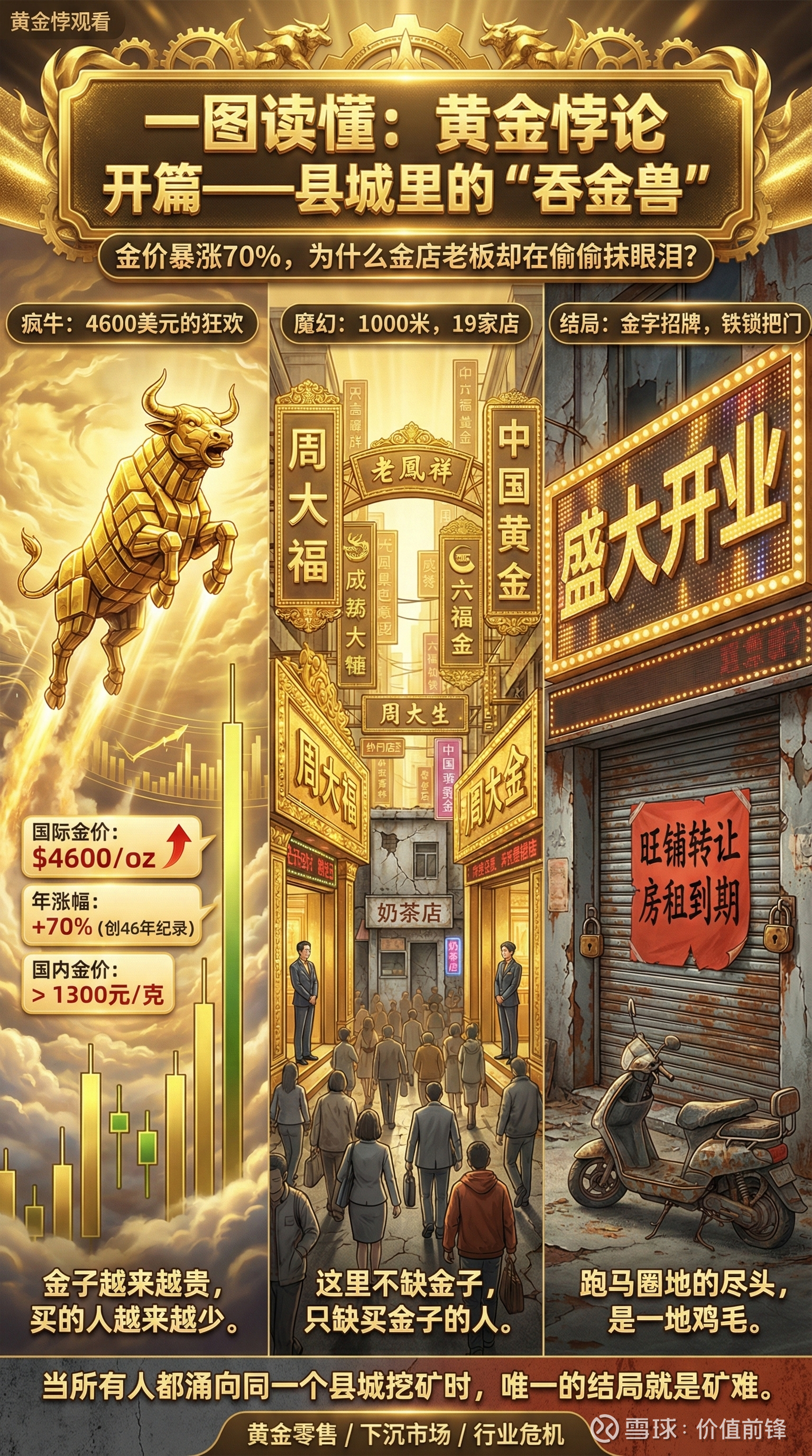 如果你在任何一个县城的商业街走一圈,会发现一个魔幻的场景:金店的招牌依然金光闪闪,但有些店铺已经悄悄换了主人,或者干脆拉下了卷帘门。
