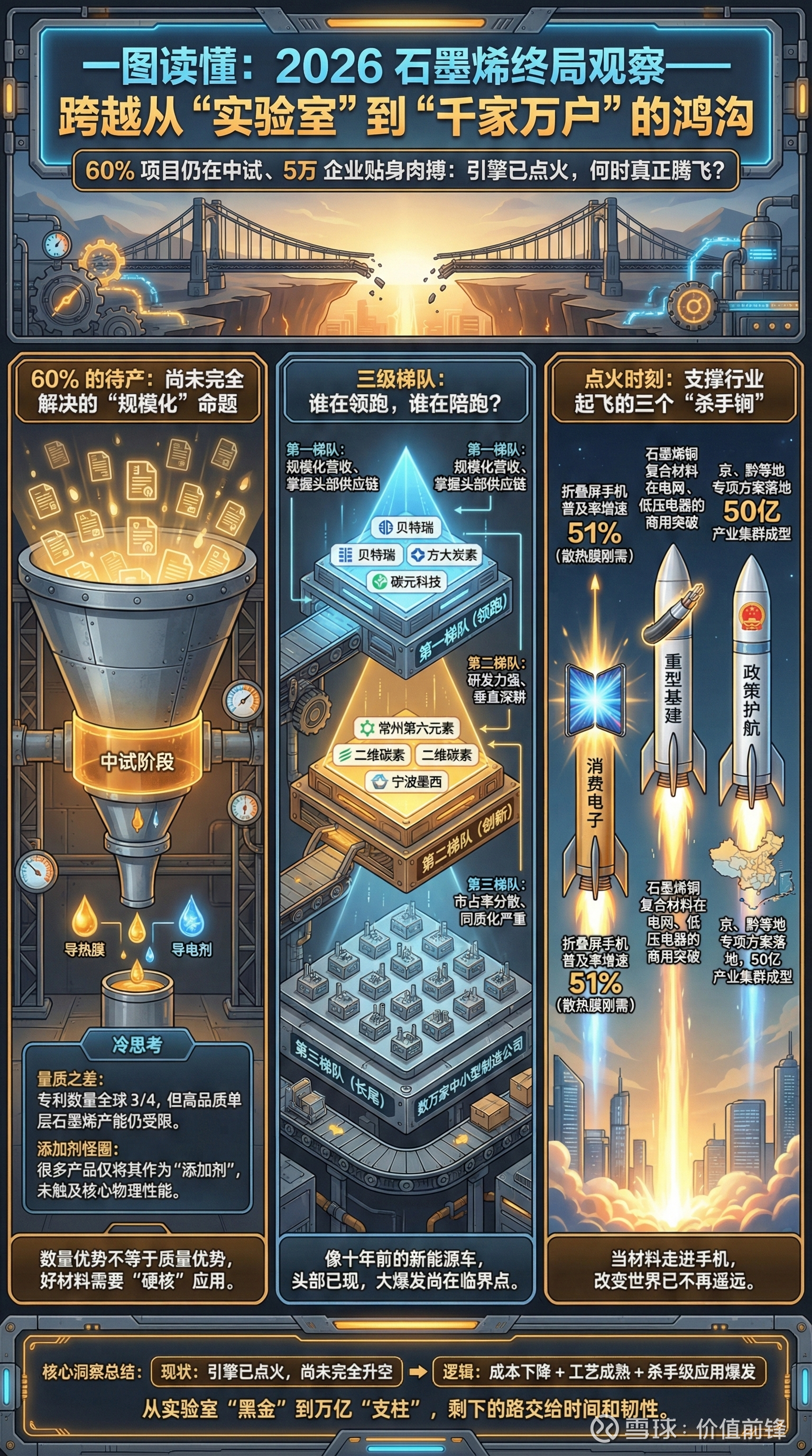 换个通俗的说法:石墨烯行业目前就像是十年前的新能源汽车行业——大家都看好未来,头部企业已经跑出来了,但大规模商业化的临界点还没有完全突破。