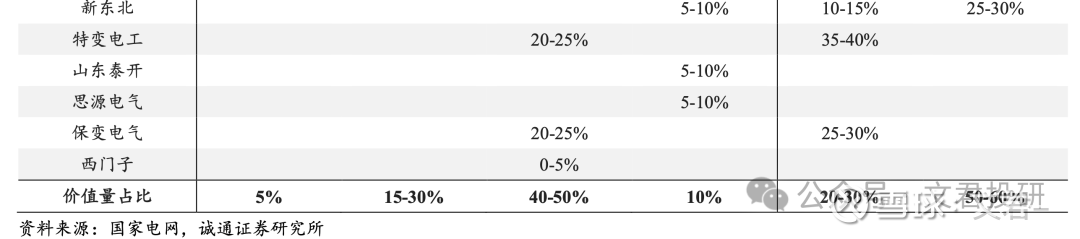 在过去几年国网特高压项目招标中,公 司份额长期稳定在 25-30%(交流项目)、45-50%(直流项目)左右,由于生产技术门 槛较高,核心设备的市场份额较为稳定。