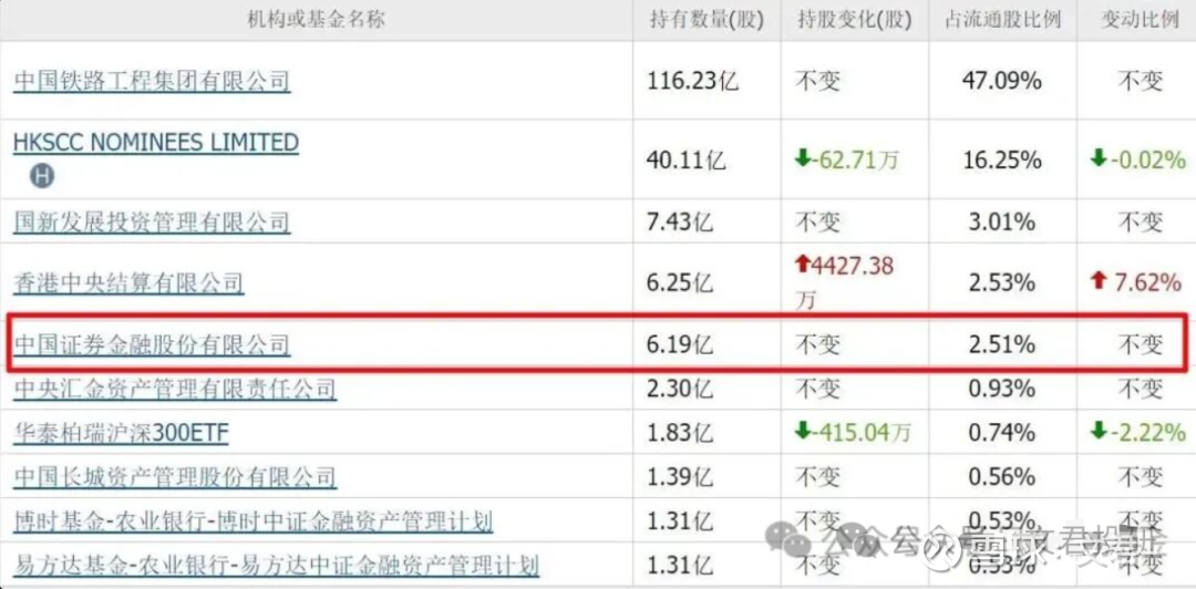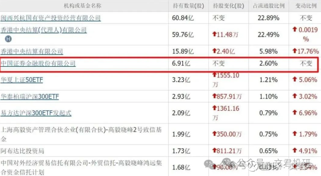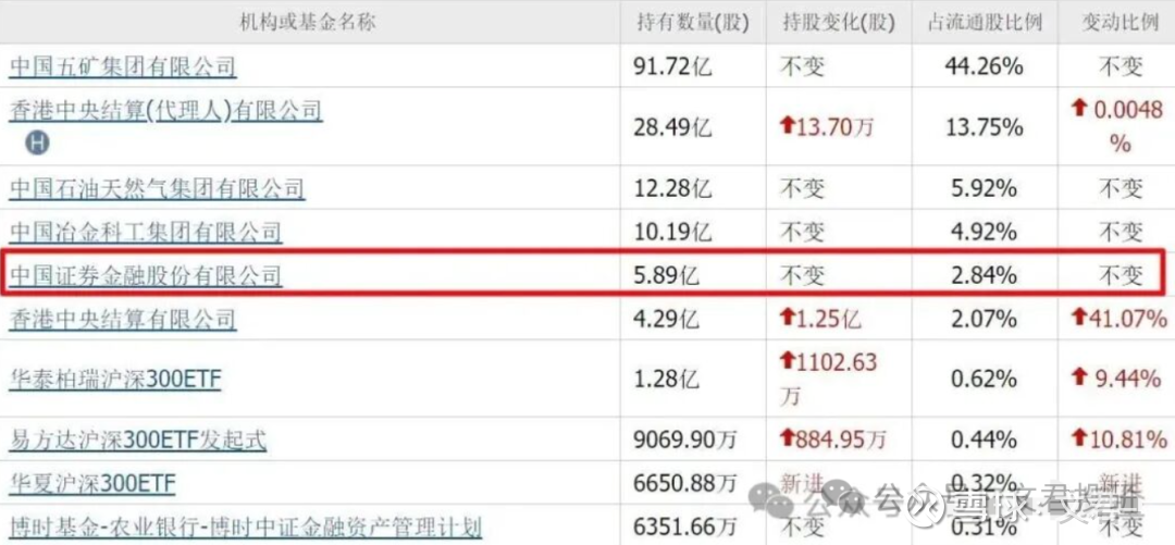 二季度,证金公司重仓6.19亿股,位列第五大流通股东。