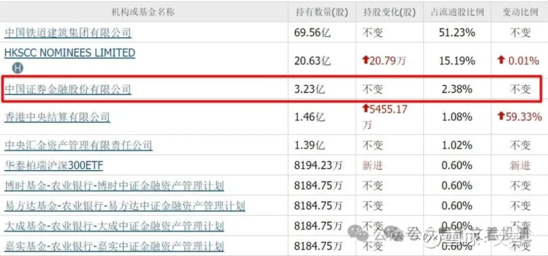 二季度,证金公司重仓3.23亿股,位列第三大流通股东。