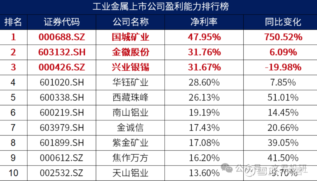 冶炼企业虽然受铜精矿加工费下跌的影响,但头部公司有办法——要么扩规模,要么靠副产品赚钱,上半年九成有色公司盈利,就能看出来行业多景气!