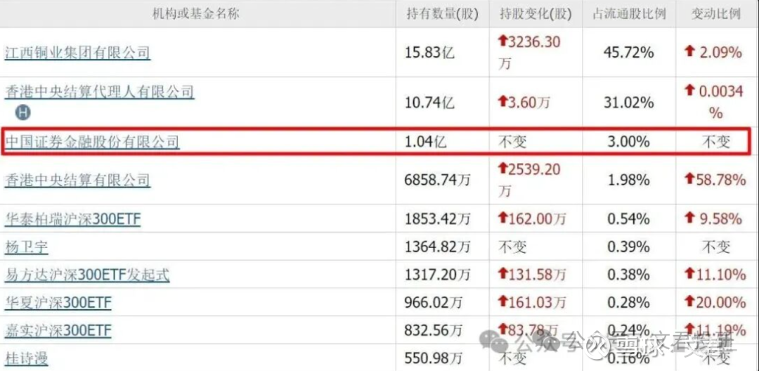 二季度,证金公司重仓1.04亿股,位列第三大流通股东。