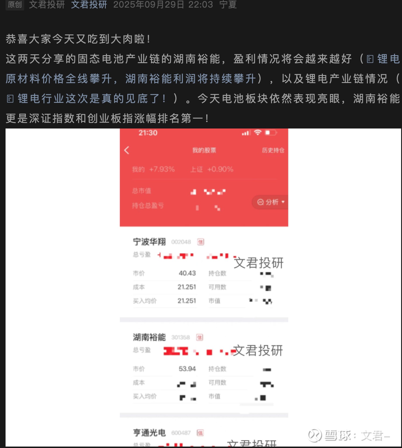 晚上好,今天锂表现不错,赣锋锂业涨停,天齐锂业7%,湖南裕能放假前大涨,今天没有微跌算是坚挺了(固态电池正极材料龙头湖南裕能,产品需求强劲,增长前景广阔);