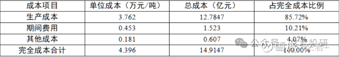 3、合盛硅业100%工业硅自给带来直接材料优势,但多晶硅产能未释放,最终单位生产成本5.21万元/吨、完全成本6.17万元/吨。