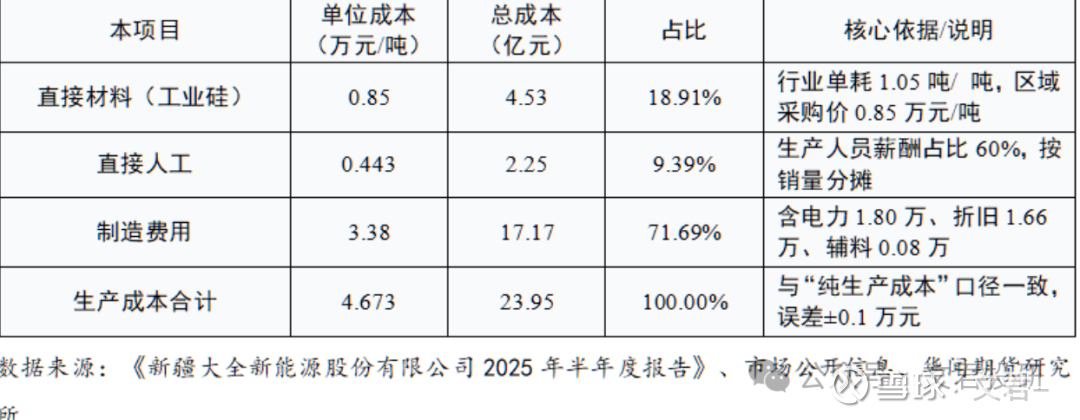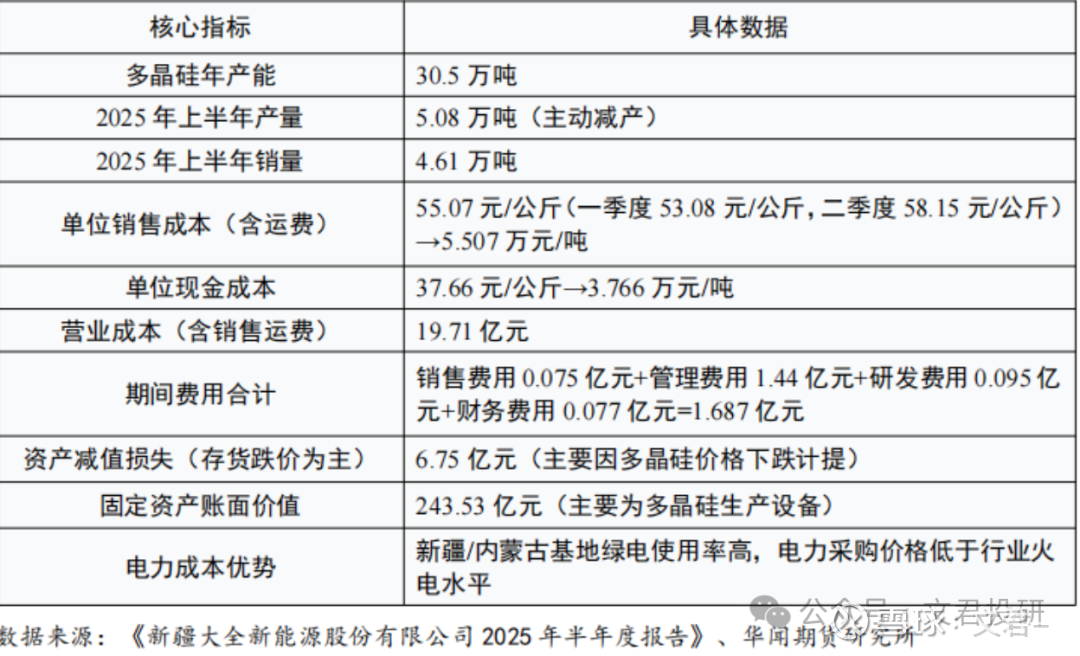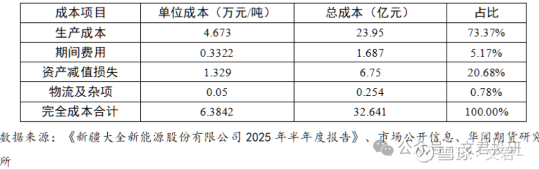 4、大全能源新疆绿电与工艺成熟度支撑生产成本4.67万元/吨,但资产减值(6.75亿元)与低利用率推高完全成本至6.38万元/吨,上半年亏损幅度扩大。