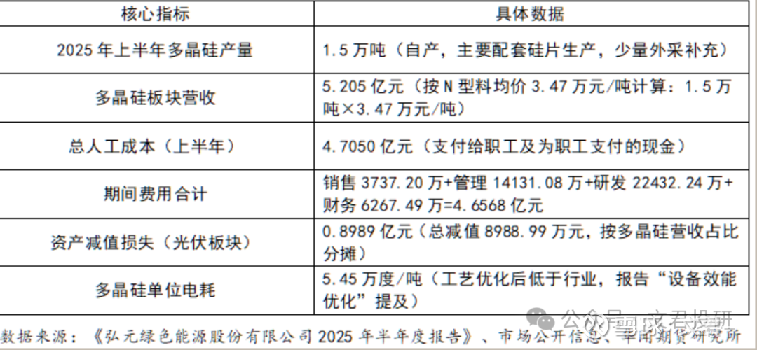 还有,中小产能企业低利用率推高固定成本。弘元绿能多晶硅产能10万吨,上半年利用率15%,单位折旧1.2667万元/吨,占生产成本29%,成为成本高于协鑫、通威的核心原因。