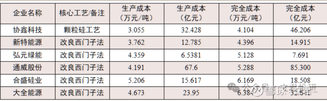 1、协鑫科技依托FBR颗粒硅工艺(电耗仅3万度/吨,为改良西门子法的50%)及新疆戈恩斯工业硅自给(成本0.89万元/吨),单位生产成本3.05万元/吨、完全成本4.10万元/吨,现金成本2.62万元/吨,为行业最低。