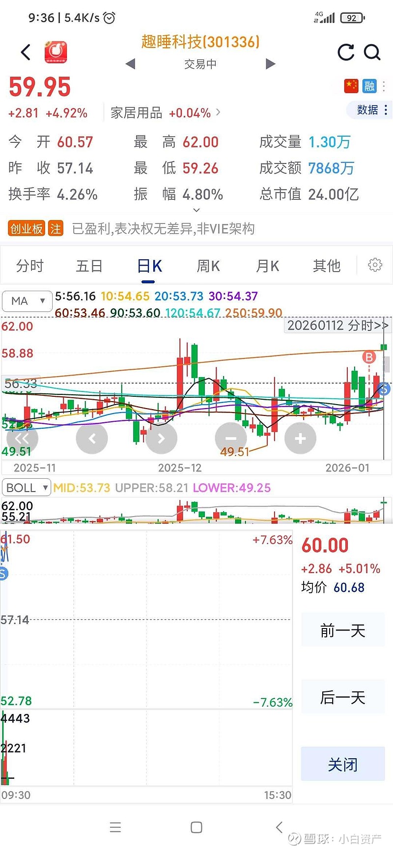 止盈15%,61块卖出。持仓5天。(⊙o⊙)哇,爽爆了。我也吃上过年行情红利了。