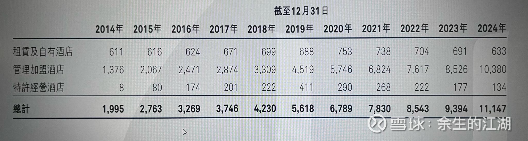 自有酒店数量几乎降低到 10 年前,加盟数量持续高速增长,这部分今年收入要过百亿了。