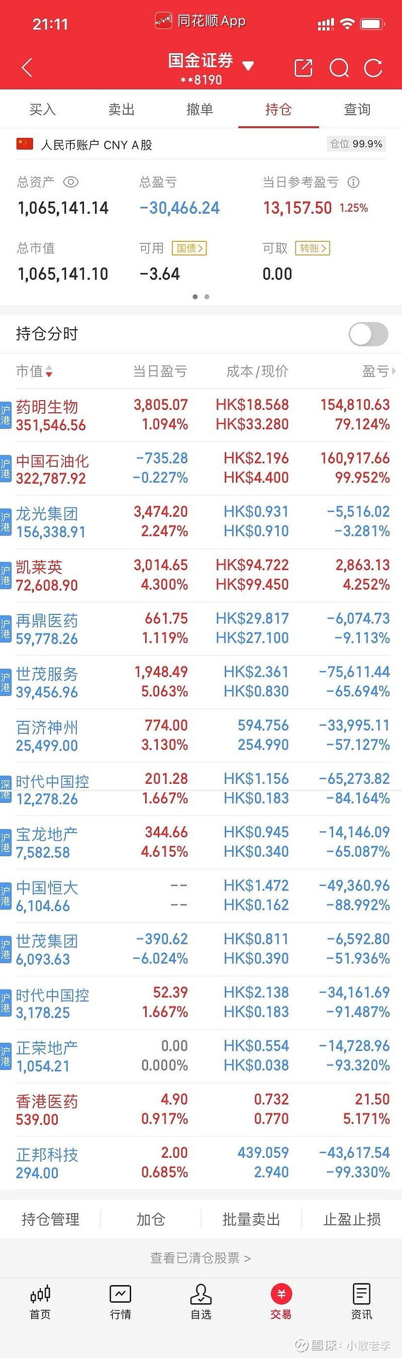 港股、大A都已经创新高,可我帐户还没有创新高,这不就是满仓踏空嘛,难受!想调仓卖出石化、想买入