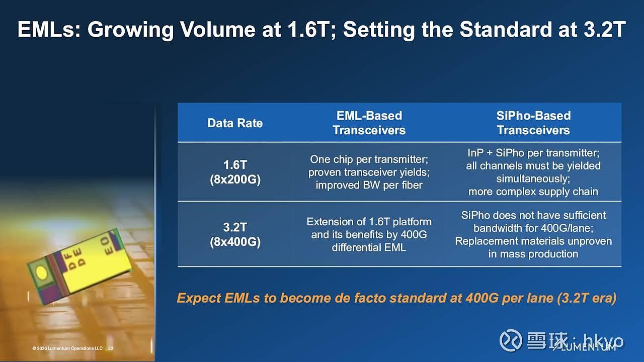 (1) 8x400G时代, EML 会成为事实上的标准;