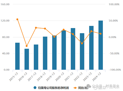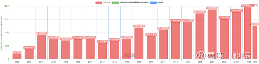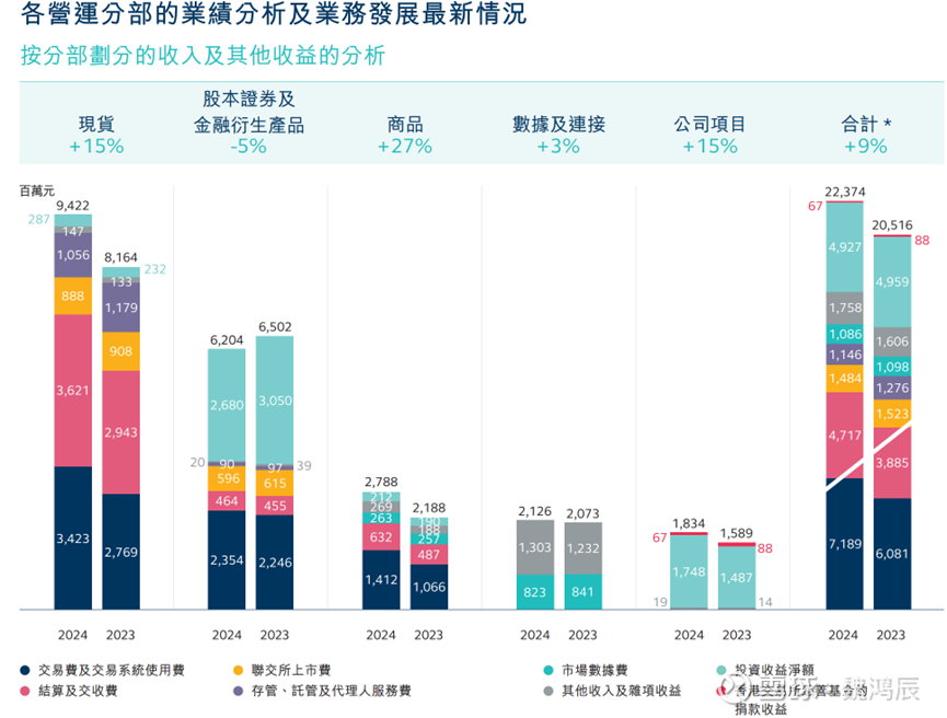 营收和利润大体上跟资本市场的牛熊周期挂钩,但由于其交易所和收入的多元化,营收和净利润有一定的韧性,一般牛市年份转熊的下一年会产生营收和利润绝对值的下滑,但第二年就会相对牛市年份转为增长或持平(例如2023相对2021,2017相对2015)。 2015-2017和2022-2024用平均值测算,营收年均增长5%,EBITDA年均增长7%,分红率稳定在90%,分红金额年均增长7.5%。在周期性的特点里,内含着成长性。(营收和利润变化图表来自公众号“时乘潜龙”)