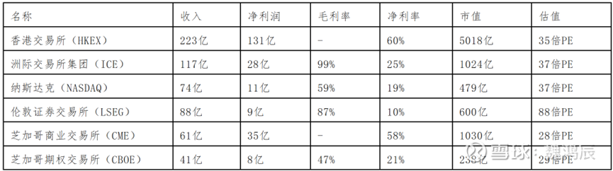 从全球交易所对比来看,香港交易所自身的盈利能力处于全球领先水平,估值水平中等。