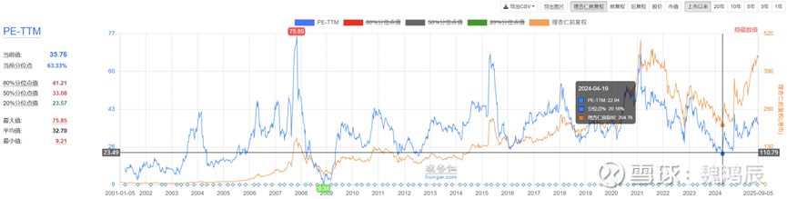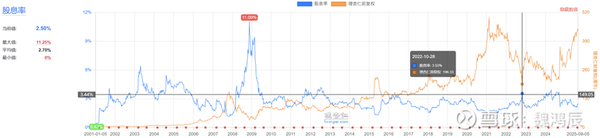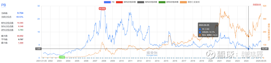 但由于港交所的商业模式非常优秀,股票价格一直比较贵。①从股息率来看,股息率平均值2.7%。观察2015年以来历史股息率的变化,每次资本市场转熊以后,股息率都能达到3%以上,但超过4%是很难的,这是可以考虑的建仓区间。②从pe来看,基本在25-75之间,08金融危机时短暂到过9,比较现实的是等待25-30的建仓区间。周期股pe容易失真,要结合着几个指标一起来看。③从pb来看,2005年以后,大概在5.5-15之间,建仓等待5.5-8的区间。