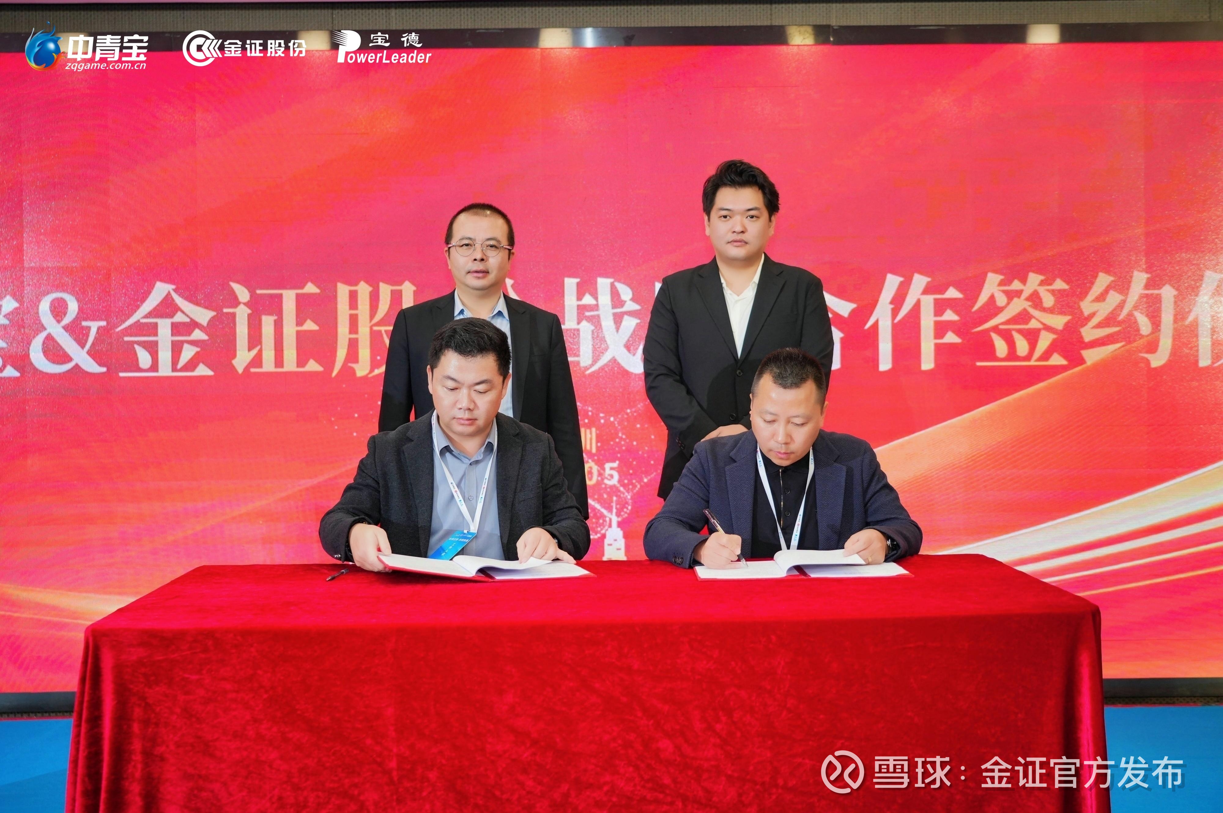 在中青宝董事长李逸伦和金证股份总裁王清若的共同见证下,中青宝总经理梁海栋与金证股份子公司金微蓝执行总经理涂洪川分别代表双方企业签署战略合作协议。