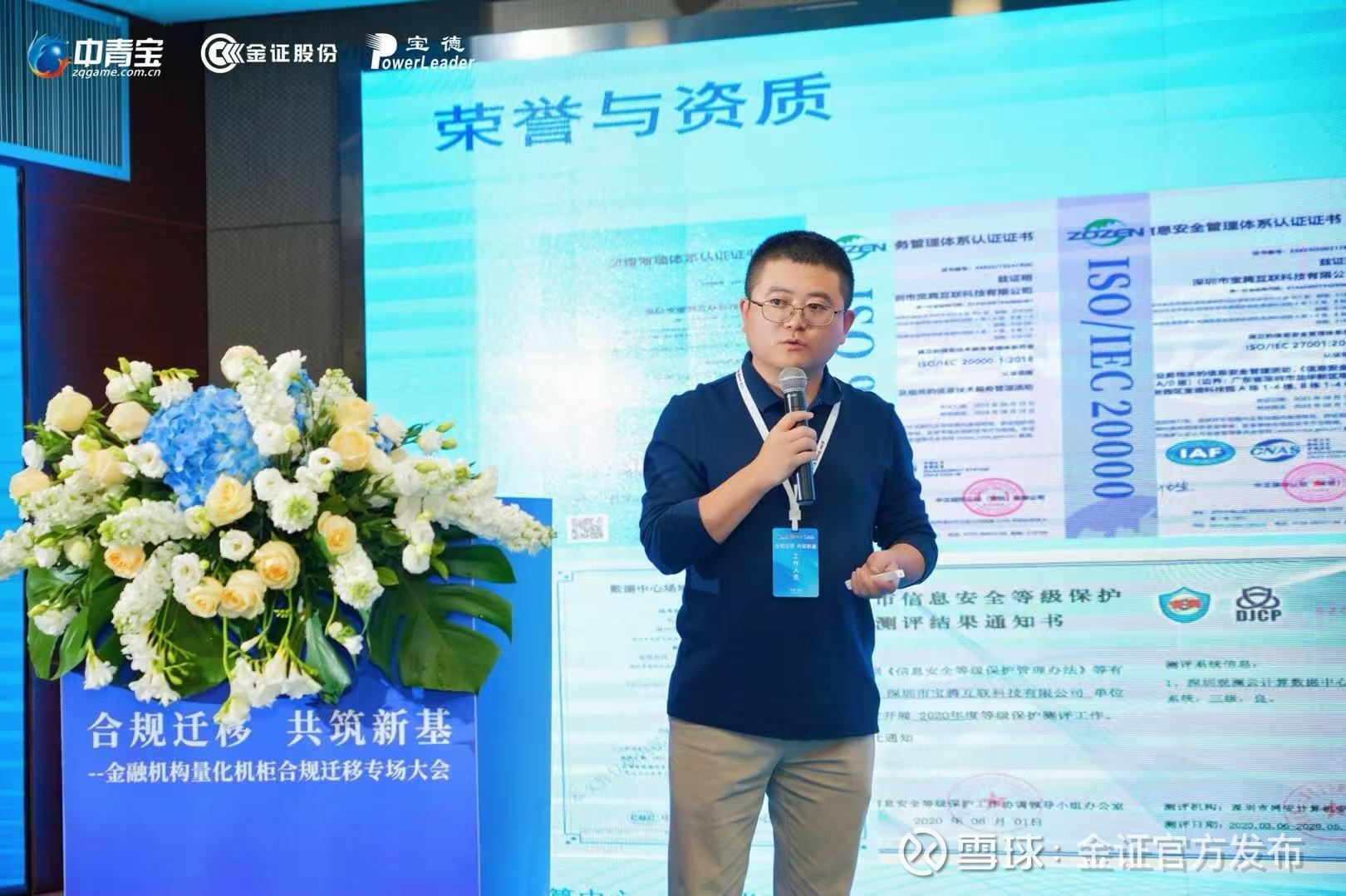 在主题演讲环节,中青宝基础设施部运维副总经理李原洲围绕《宝德数据中心:金融券商合规安全底座》主题,对宝德观澜云计算数据中心进行详细介绍。