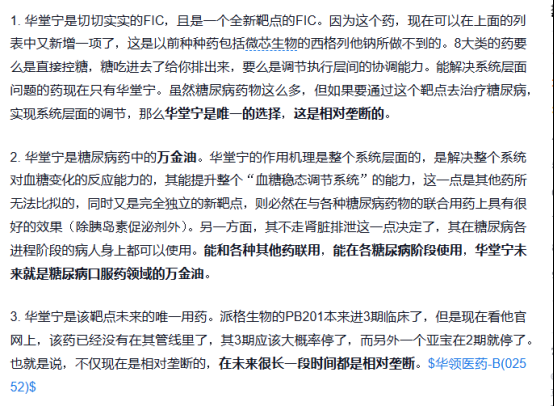 这是年报让我最欣喜的地方!我在我原来的文章《华堂宁-糖尿病领域的相对神药》里已经将葡萄糖激酶的特性写得非常清楚了,(我觉得我这篇文章写得老棒了,有兴趣可以去看看)我也预测到他的多脏器靶点(葡萄糖激酶分布在肠道、胰腺、肝脏及下丘脑中)特性必然带来远比恩格列净(SGLT-2,仅肾脏靶点)等多得多的适应症的可能性;同时他在血糖稳态系统中系统层面的地位也注定他能跟很多糖尿病药物联用,而这是其成为一线用药的必然要求。而这些都在公司业绩报告里得到了官方层面的正式的证明!这是让我个人最欣喜的地方,也是让我觉得这份年报最重大的信息!