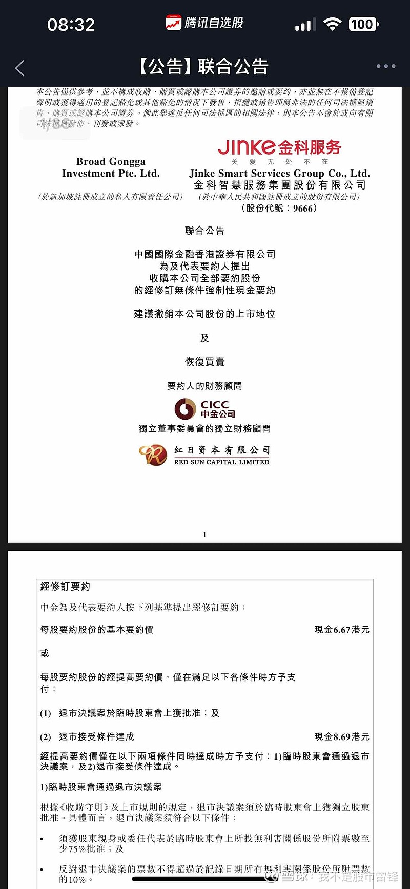 市场上唯二的独立物业公司,本来计划做完$恒大物业(06666)$ ,$金科服务(09666)$ 接棒的,没想到金科直接倍博裕私有化了,之前公告还说会维持上市地位,骗子啊。珍惜独苗$恒大物业(06666)$ 吧。