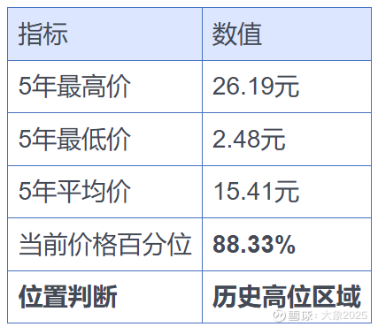 当前股价处于5年88%分位,估值安全边际不足