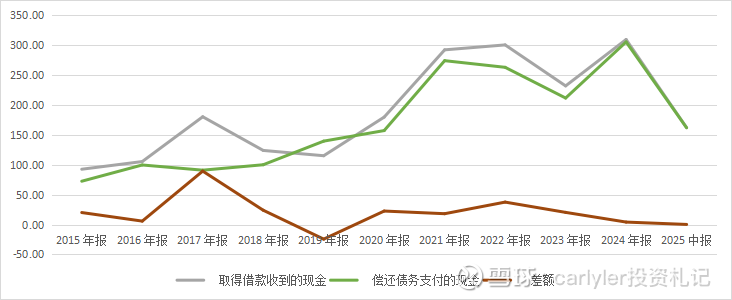 我在前一篇文章说过搞钱是复星医药的强项,这是一个不差钱的主,不少筒子提出了反对意见。大家不信,可以看看下面这个图,举10年的例子足够说明一切。除了2019年借的钱不够偿还债务,其他年份都是借的钱多于当年要偿还的钱。所以说搞钱是这家公司的强项。每年都能够搞到足够的钱,借新还旧。