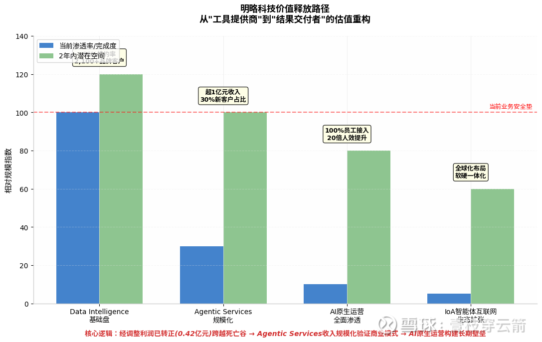 我们不妨做个假设:如果Agentic Services继续保持30%以上的新客户渗透率,同时存量客户的96%高续约率得以维持,明略科技的收入结构将在未来两年内发生质变。