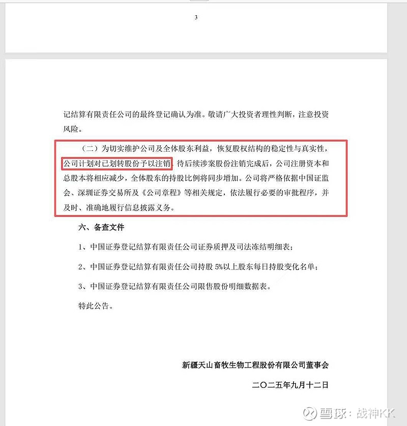 【天山注销 36% 的增发股,能给各位股东增加多大比例权益?】答案是 :能增加56% 的权益,各位股东在天山的持股比例将增加56%!好比一只股如果你亏 50%,涨回去就需要翻倍。天山注销36%欺诈增发股后,要回到注销前市值就需要股价增涨56%。也相当于有56%的无风险套利空间!$*ST天山(SZ300313)$
