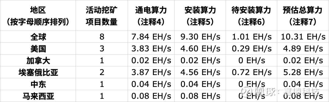 6.指已交付到每个挖矿项目所在国家但尚未安装的算力。