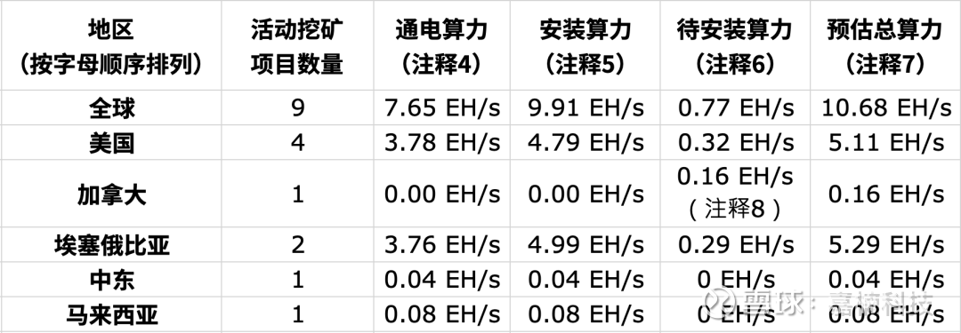 6.指已交付到每个挖矿项目所在国家但尚未安装的算力。