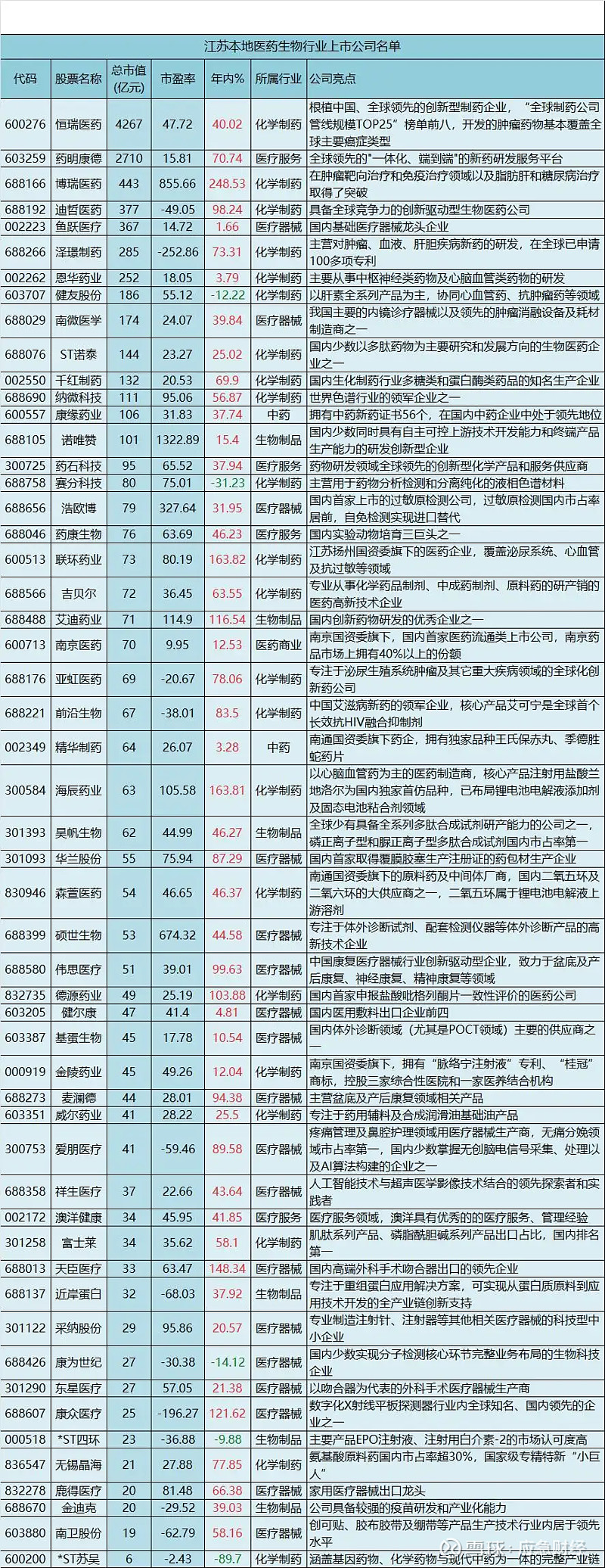 江苏医药股阵容强大,目前,共有53家A股上市公司。其梯队非常清晰:既拥有恒瑞医药、药明康德这样的全产业链龙头,也孕育了博瑞医药、迪哲医药等在高精尖领域突破创新的生力军,更覆盖了从创新药、医疗器械到研发服务的全产业链环节。