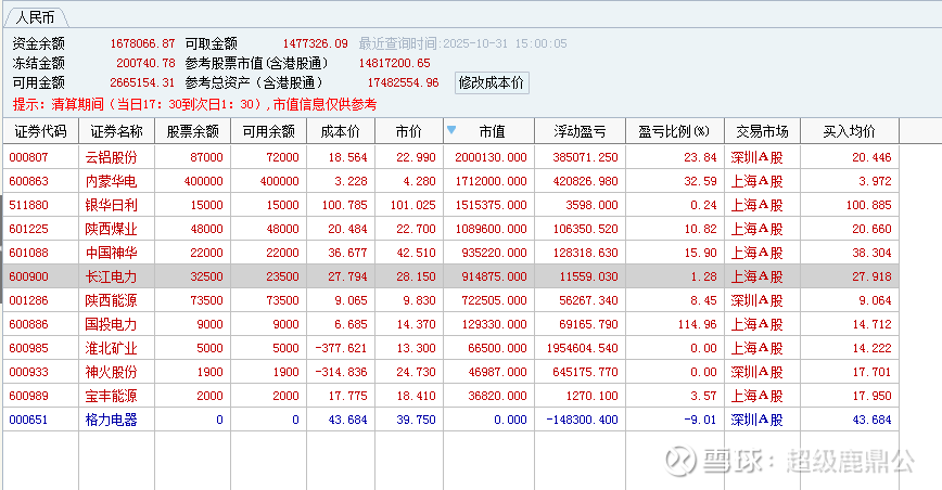 本月减持了5.5万股中煤H,1万股神华A,清仓了格力电器,神火换仓到了云铝,加了点新城发展H