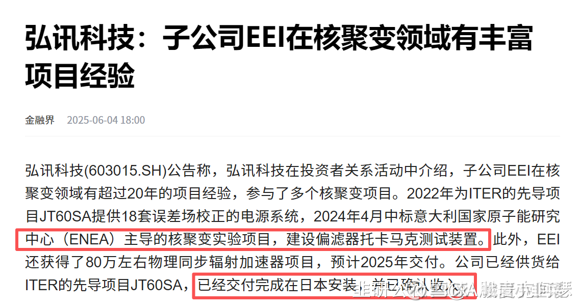 弘讯科技:子公司EEI在核聚变领域有丰富项目经验