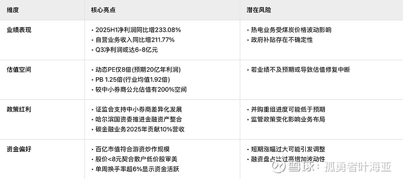 催化剂:国资改革加速(哈尔滨国资委推进金融资产整合)、碳金融业务落地(2025年或贡献10%营收)。