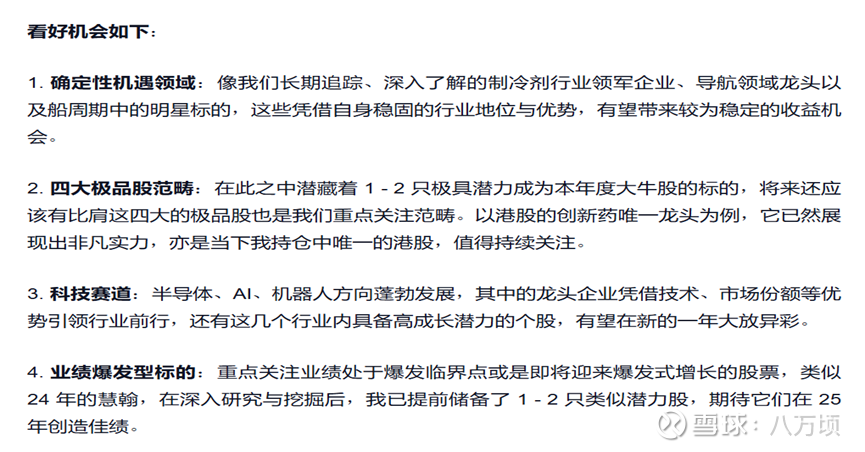 5. 优质个股:团队虽聚焦前述两大核心赛道深耕,实则也暗藏几只优质标的。关注我朋友圈的人应该清楚,单次调研往往不作数,若对同一只标的调研两三次,便足以说明我们对其价值的高度关注与深度研判,具体标的为避免麻烦,在此不一一展开。