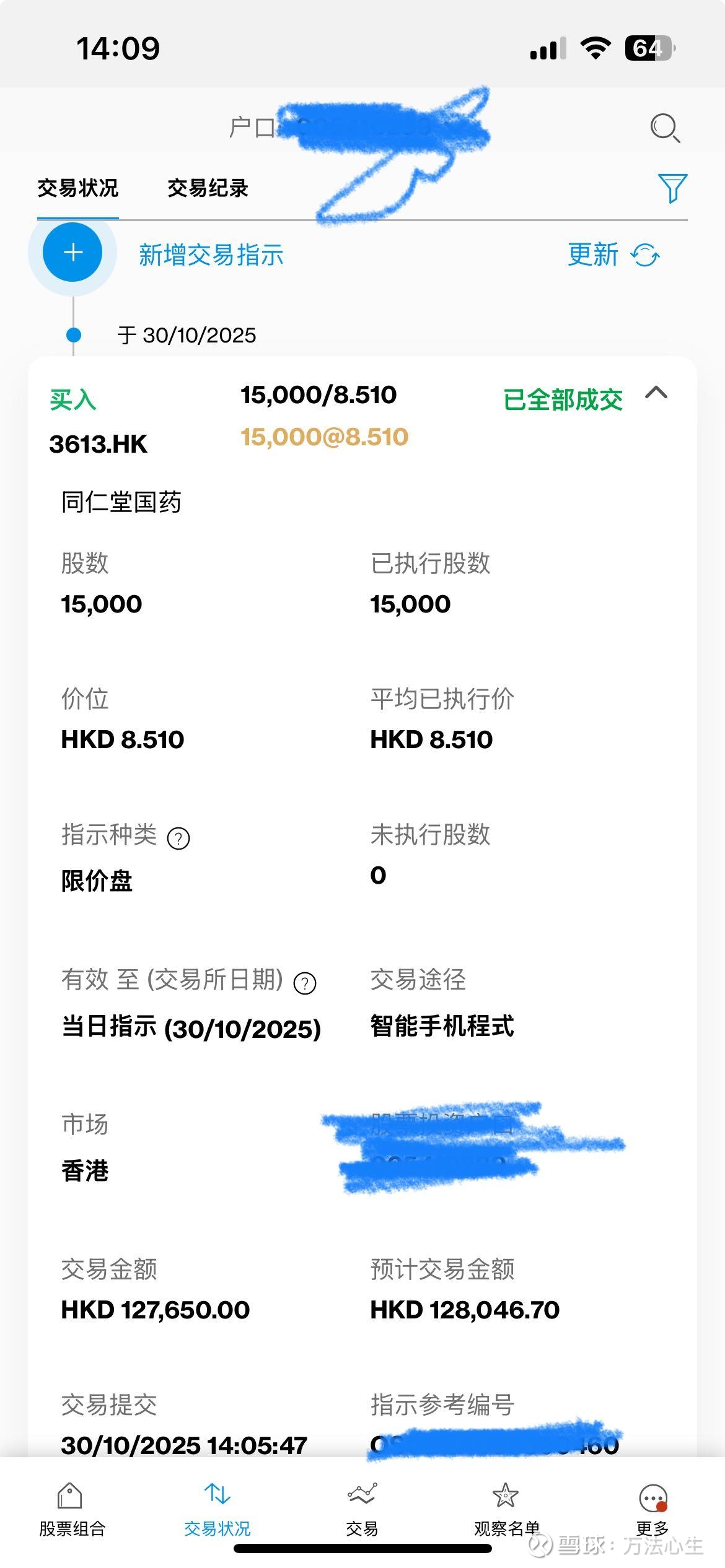 逆向而行-同仁堂加仓同仁堂国药150手,目前收集880手,股息率已经超过4%,花71-21=50亿成本买一家350年中国第一中药品牌公司,每年赚5亿,不需要大额资本支出和研发费用,产品刚需,毛利率60%,净利率30%,静态10年收回成本,无增长保底10年收回成本,不亏!做个逆向而行的孤独者!$同仁堂国药(03613)$ $同仁堂(SH600085)$