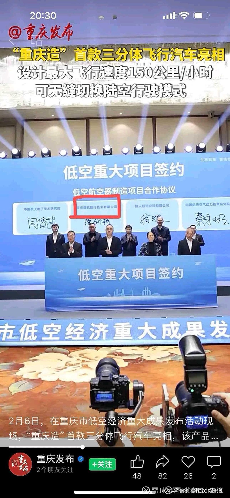 一边是三分体设计、能无缝切换陆空模式的“重庆造”飞行汽车,在重大成果发布会上惊艳亮相;另一边是全国首款航天造电动垂直起降飞行器,以“航天级积木”模块化技术成功首飞。作为重庆本土的新能源汽车龙头,赛力斯凭借在新能源动力、智能驾驶领域的深厚技术积累,正深度参与到低空经济生态的建设中,从地面出行向低空飞行延伸,未来我们或许能看到“赛力斯造”的飞行汽车翱翔天际。从签约合作到适航标准突破,再到龙头企业的跨界布局,中国的天空正在迎来越来越多的“中国智造”身影,未来出行的无限可能,正在一步步照进现实。@赛力斯