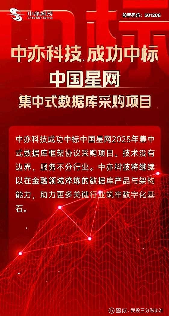$中亦科技(SZ301208)$ 中亦科技中标中国星网数据库项目。