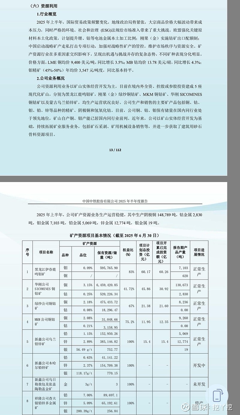 中国中铁2025年上半年资源利用业务核心表现及行业地位