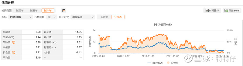 (一)目前PB(MRQ)所处位置:截至2025年12月1日,益丰药房PB 2.50倍,处于上市以来1.44%百分位。上市以来PB最小值2.15出现在2024年9月,PB最大值11.55出现在2020年9月。