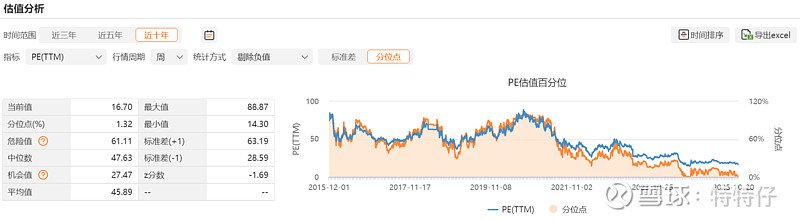 益丰药房的估值处于近十年的底部,主要原因是由大幅扩张转向了高质量的稳健经营,反应在财务数据上就是营收增速和净利润增速显著放缓。但是目前的16.7倍的市盈率,笔